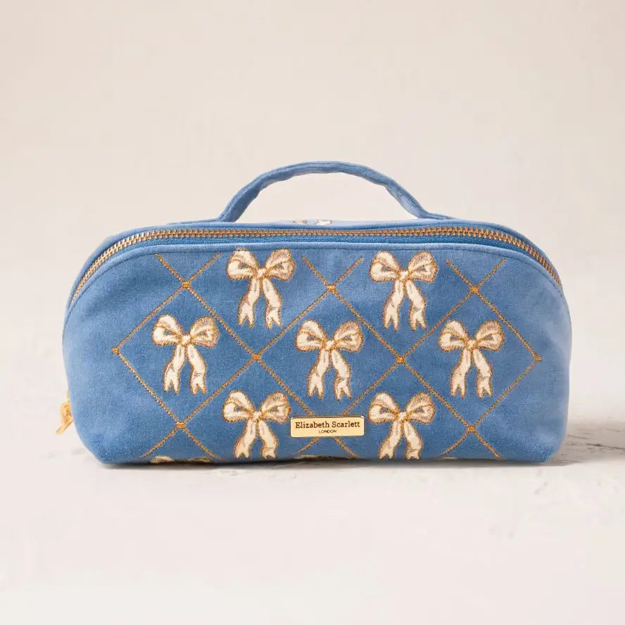 Elizabeth Scarlett Lattice Bows Open Flat Makeup Bag - Dusky Blue