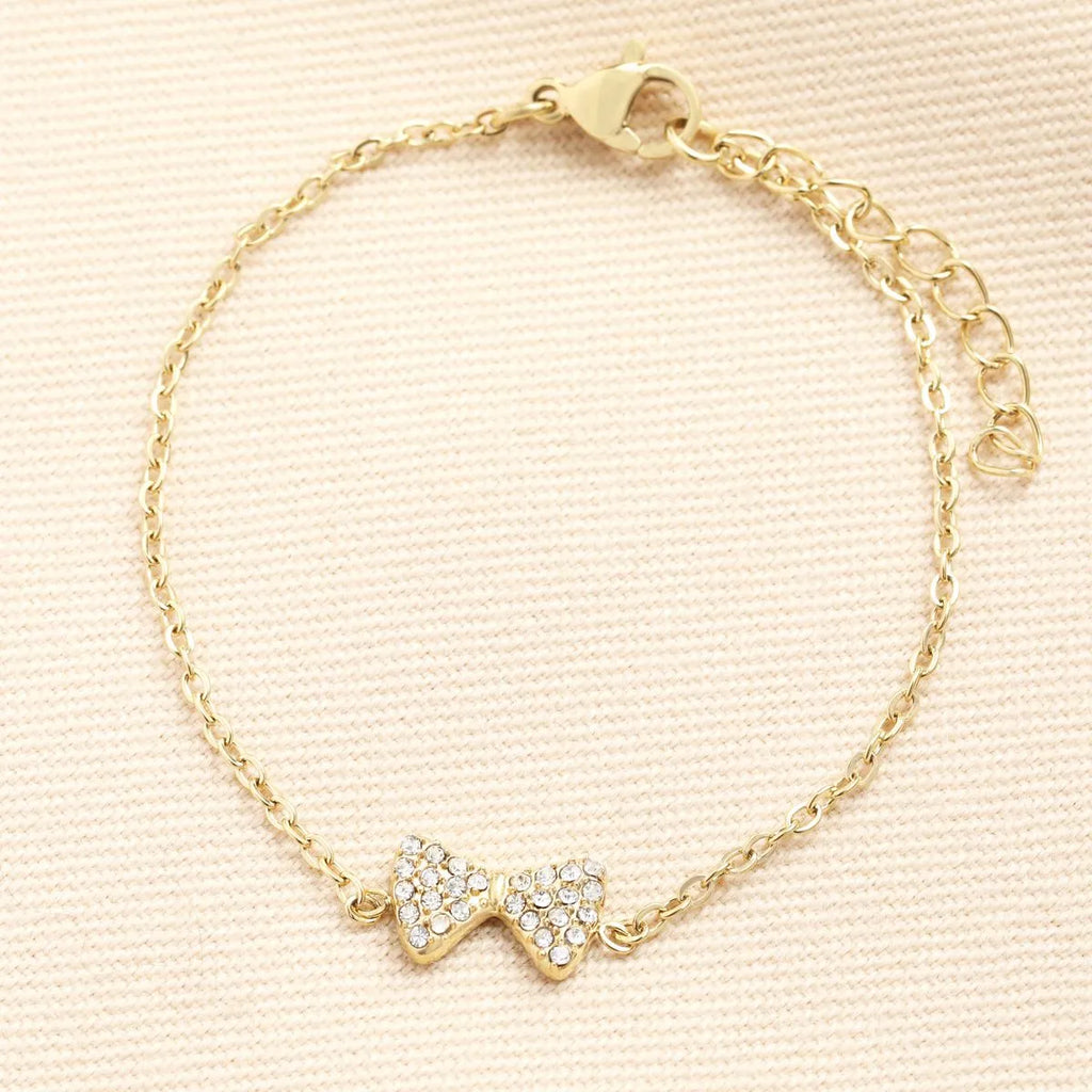 Lisa Angel - Stainless Steel Crystal Bow Charm Bracelet in Gold