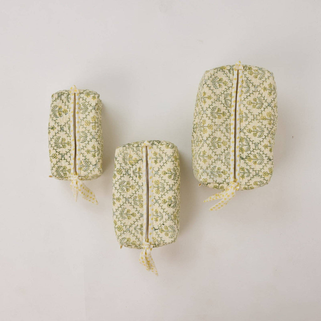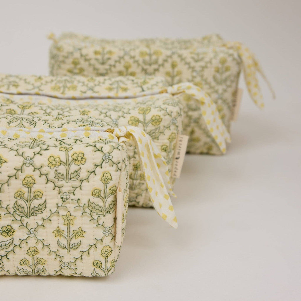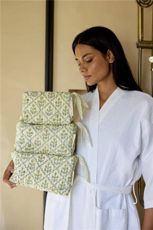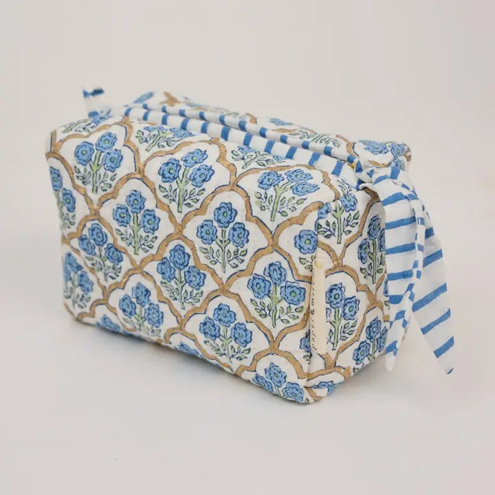 Superbly block printed by master artisans and handcrafted in small batches, this quilted toiletry bag is made using soft luxurious organic cotton and features our signature bock print designs.