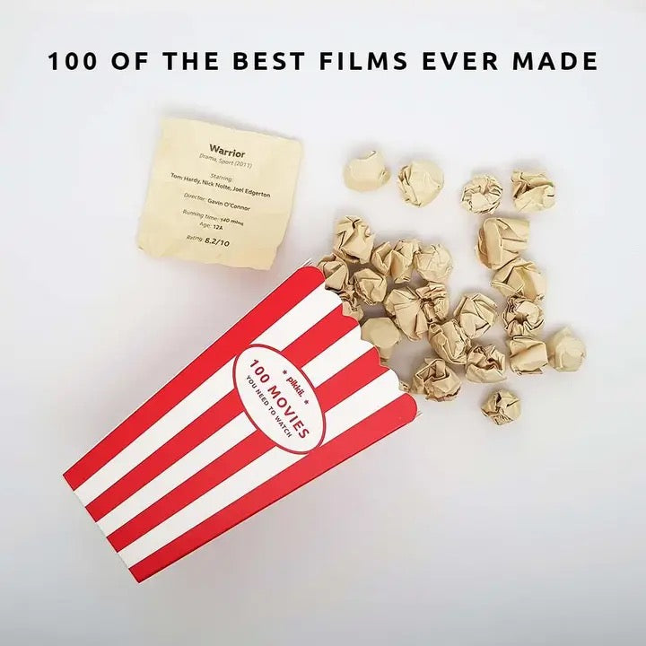 Let’s face it - sometimes the struggle of choosing the movie is just too real, so after 45 minutes of searching for a film, you end up choosing something terrible and wasting your evening. So we created the Movie Popcorn Bucket List, to make choosing a great film effortless. The mini retro popcorn box contains 100 pieces of popcorn each featuring one of the greatest movies of all time. Each square includes the movie name, genre, rating out of 10, age rating (PG, 12, 18, etc), running time, actors, director, and the year of release.