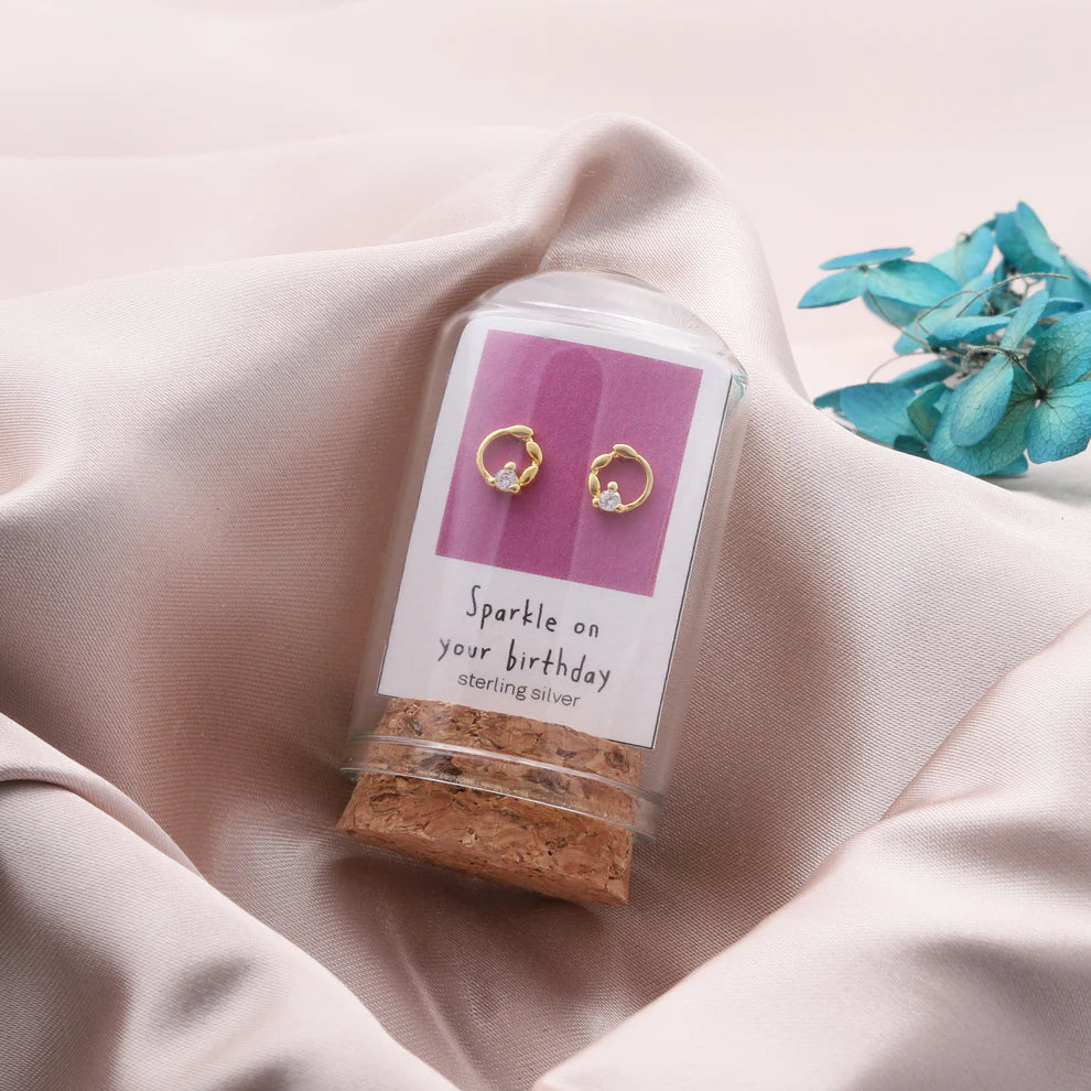 Attic Creations 'Sparkle on your birthday' circle with single crystal earrings