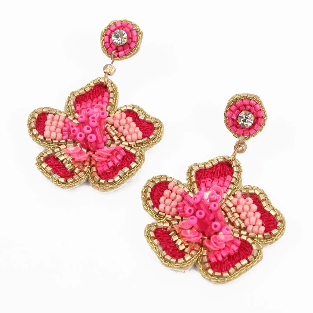 My Doris Pink Flower Beaded Earrings