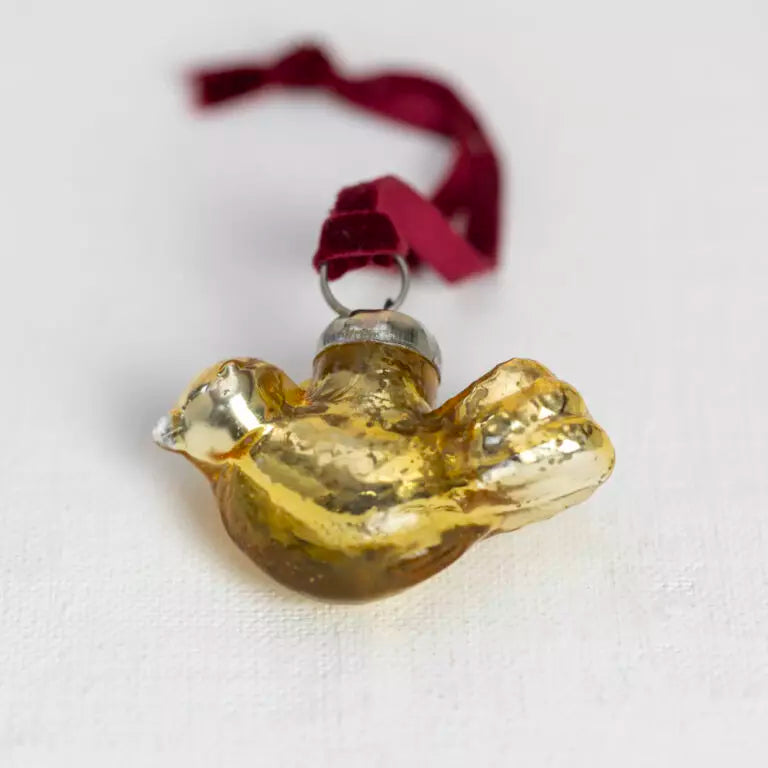 This charming glass hanging Christmas decoration is crafted in the elegant shape of a bird. With a brassy gold finish, it adds a touch of festive charm to any tree. Perfect for those who appreciate refined and graceful ornaments during the holiday season.