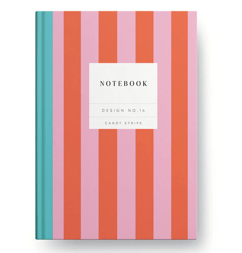 Design No.14 Candy Stripe Kaleido Hardback Notebook (A5)Add a pop of fun with the Candy Stripe Notebook. Its vibrant, candy-striped design and 192 lined pages create a lively, colorful canvas for your ideas.