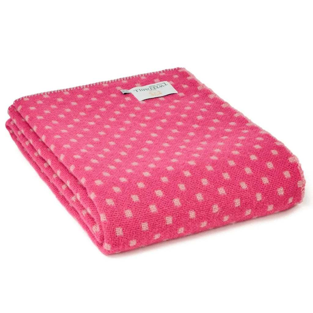 Tweedmill Cloth Throw with Blanket Stitch - 140x200cms - Pink with Dusky Pink Dots