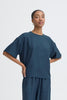 Boxy top with a soft, woven texture and a wide silhouette. Features a round neckline, relaxed drop-shoulder fit, and short, wide sleeves for an effortless, modern look.