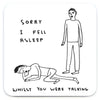 Coasters featuring original designs by David Shrigley• This coaster set comes in a lovely gift box• Manufactured in the UK from high quality melamine• All coasters have a non-slip cork backing