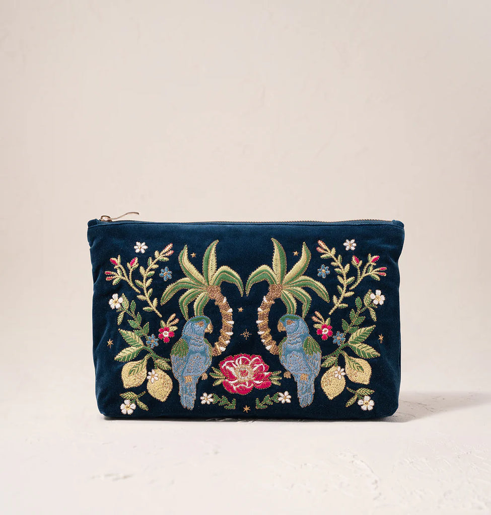 Elizabeth Scarlett Tropical Parrot Ink Blue Velvet Everyday Pouch