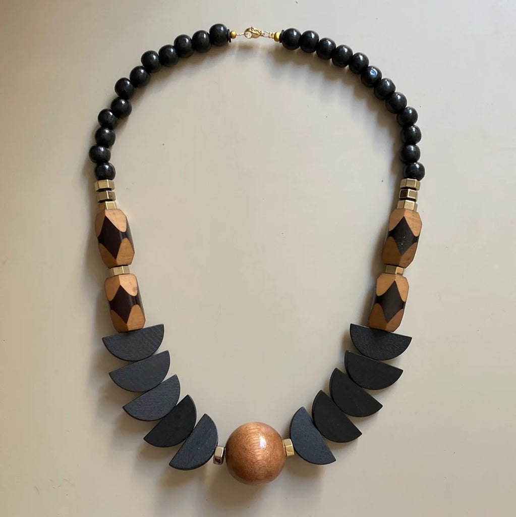 Gist Jewellery - Statement necklace, Hematite, painted wood and acrylic Necklace