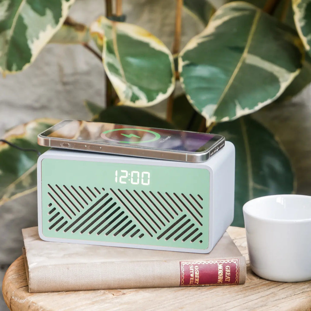 Experience the best of both worlds with Rise Mix, the innovative fusion of our beloved Rise Charge and Rise Play products. This versatile bedside companion combines seamless wireless charging and high-quality Bluetooth audio to elevate your mornings and evenings. Available in four vibrant colors - Yellow, Orange, Purple & Grey - Rise Mix effortlessly merges style, convenience, and functionality. Wireless Charging & Bluetooth Audio Charge your smartphone effortlessly with the built-in wireless charger and enjoy high-quality audio by connecting any device via Bluetooth. Intuitive Digital Display Switch between 24 or 12-hour formats on the bright LED display, ensuring you’re always on schedule. Three Alarm Modes Choose from three distinct alarm modes to conquer your mornings with precision. Adjustable Brightness Customize the three-level adjustable brightness to suit your bedroom ambiance.
