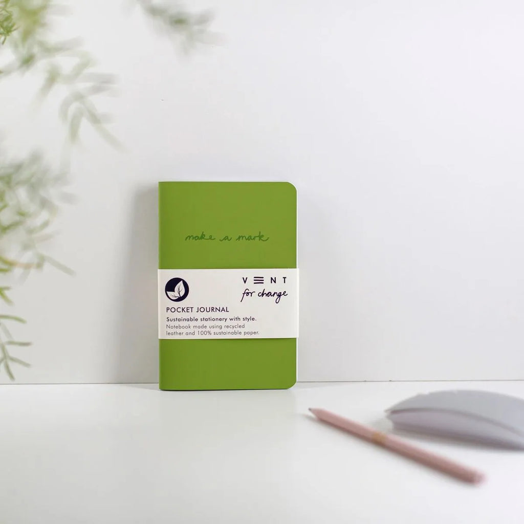 The perfect pocket journal made with recycled leather covers and 100% sustainable paper. Subtly debossed to the front cover with our Make a Mark logo. Supplied as standard with 62* pages of 80gsm white mixed lined and plain paper. Thread stitched to the spine for added durability. Pocket (100 x 150mm) Recycled leather covers in a flexible finish Lined and plain paper combination (half lined half plain) FSC certified 80gsm sustainable paper *Slim format pocket book ideal for sliding into a pocket or bag